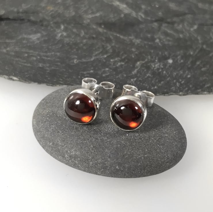 The garnet cabs measure 6mm diameter. the silver has been polished to a bright finish.