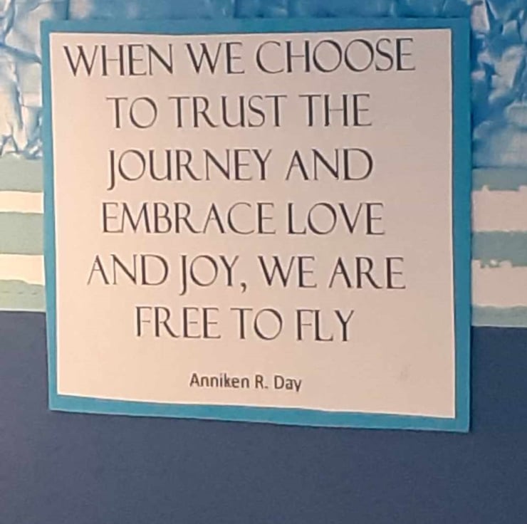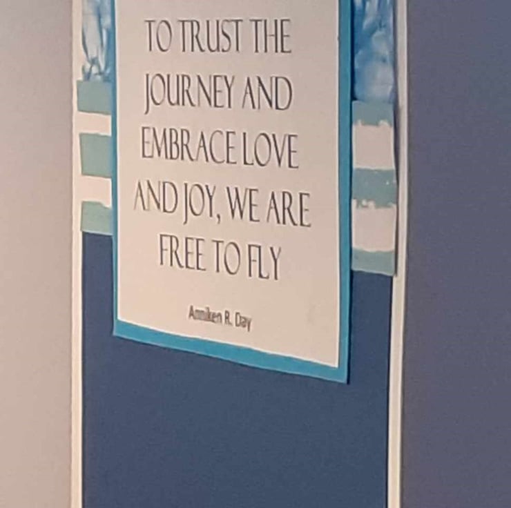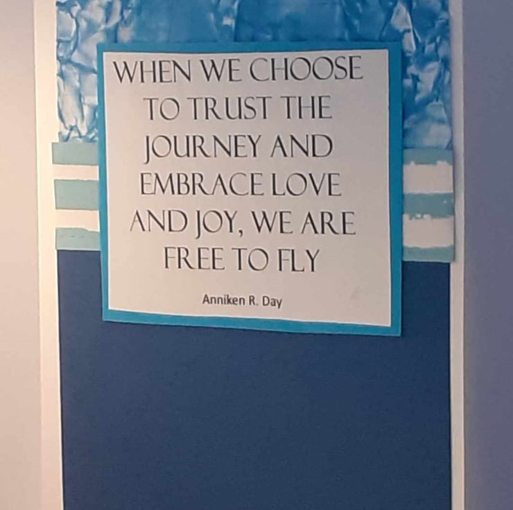 This card is has an inspirational quote to encourage or send love to the ones we care about. The quote on this card is from Anniken R. Day, set on a blue textured paper and dark blue cardstock. A great way to let those we love know we are thinking of them.