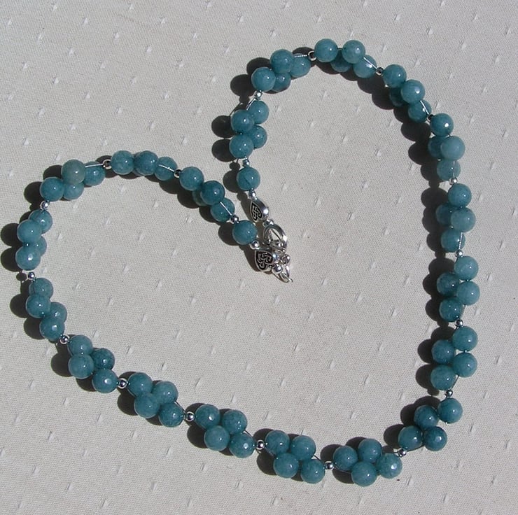 This Stunning Necklace is made wholly from Aquamarine faceted round beads clustered together in four's and for that added bit of sparkle tiny Silver spacer beads - a Gorgeous soothing effect that will look stunning either worn casually or with something more Elegant for a Special Evening out