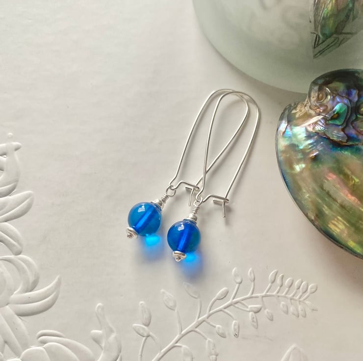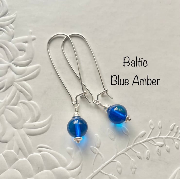Beautiful long drop handmade Amber earrings featuring 6mm Baltic Blue Amber rounds and 925 sterling silver findings. I have finished the earrings with long sterling silver kidney wires for extra security when wearing. Gorgeous earrings that have lots of movement and are so light to wear.