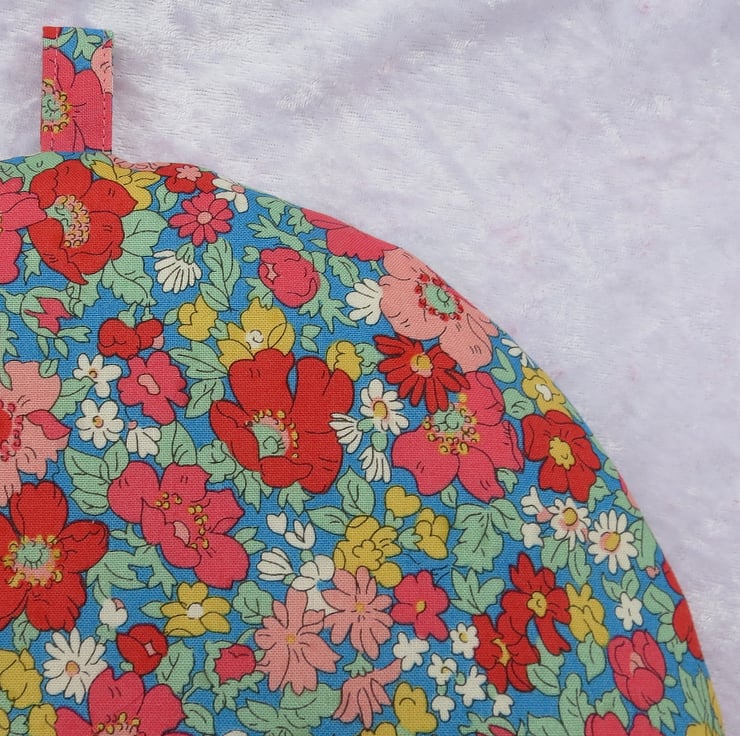 This is a medium sized tea cosy, made to fit a 3 cup teapot.