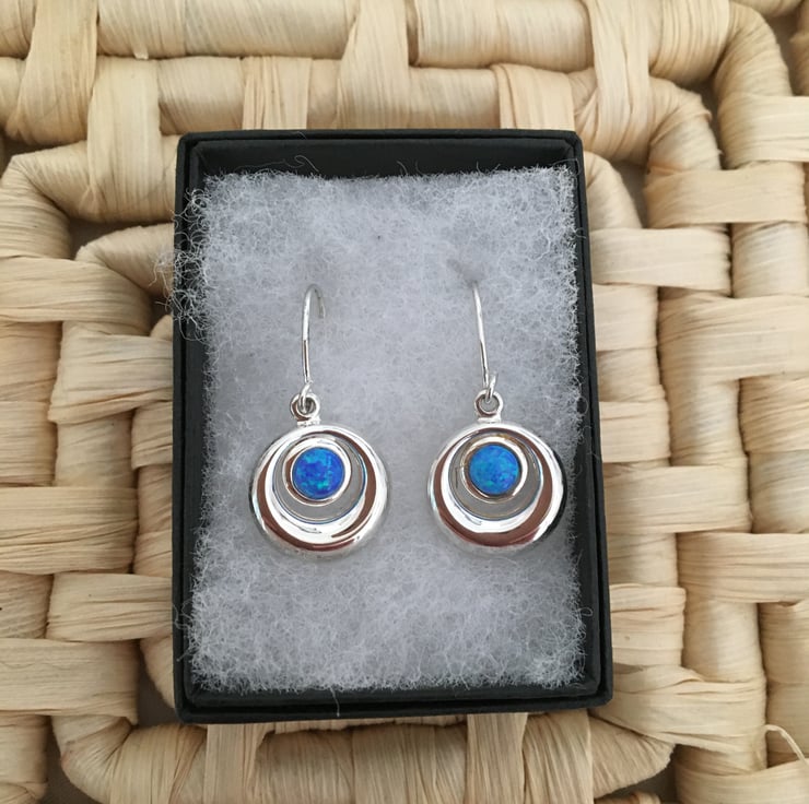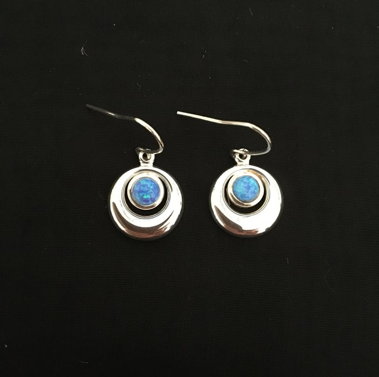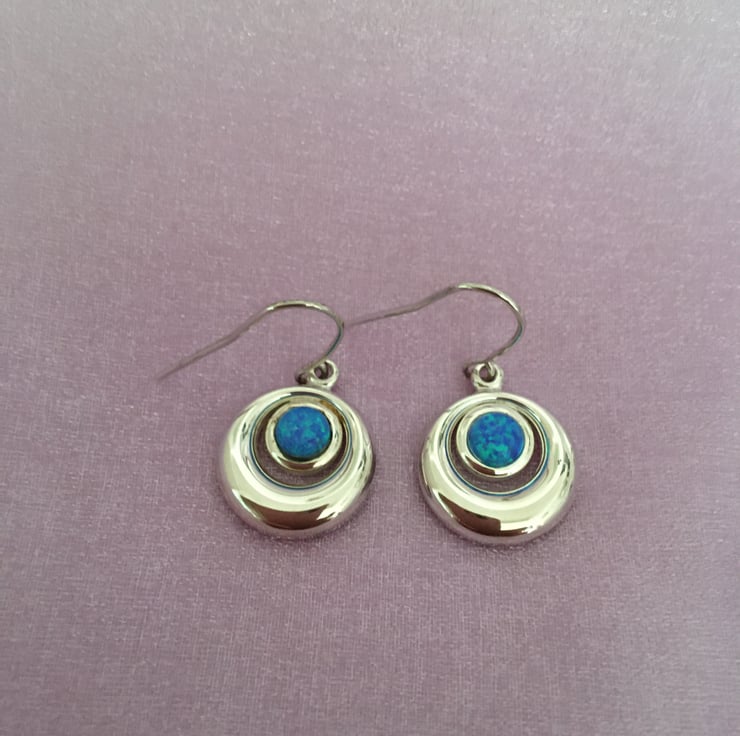 Beautiful and cute double circle earrings with faux opal centrepieces.