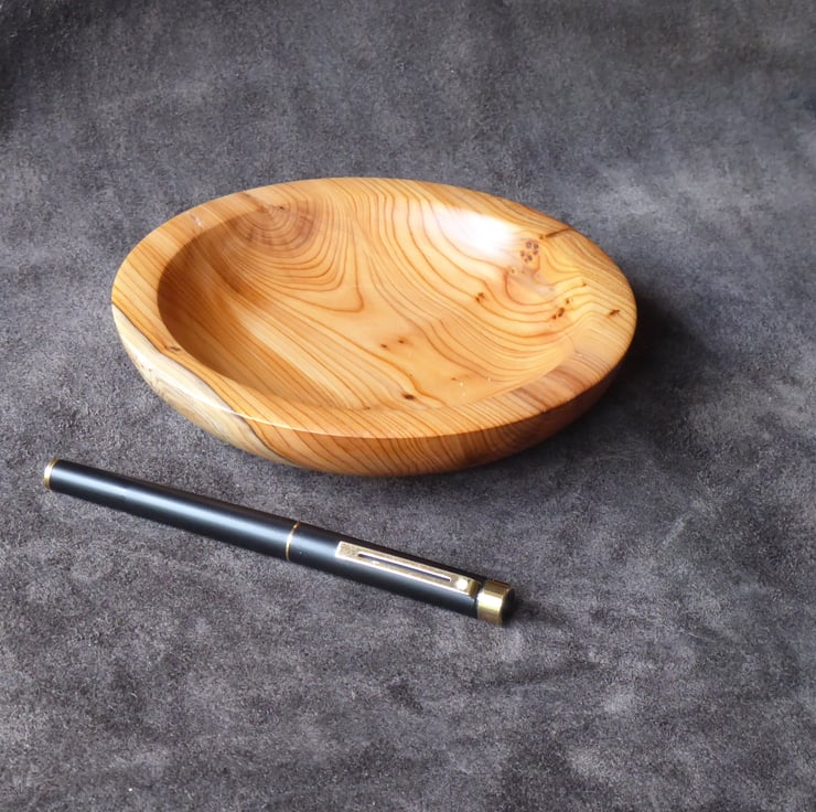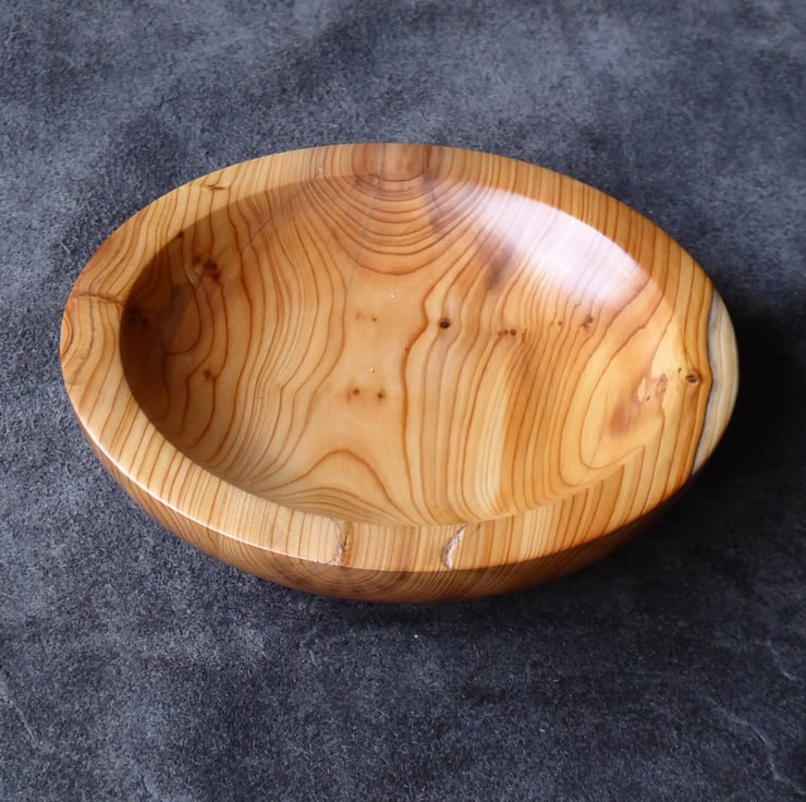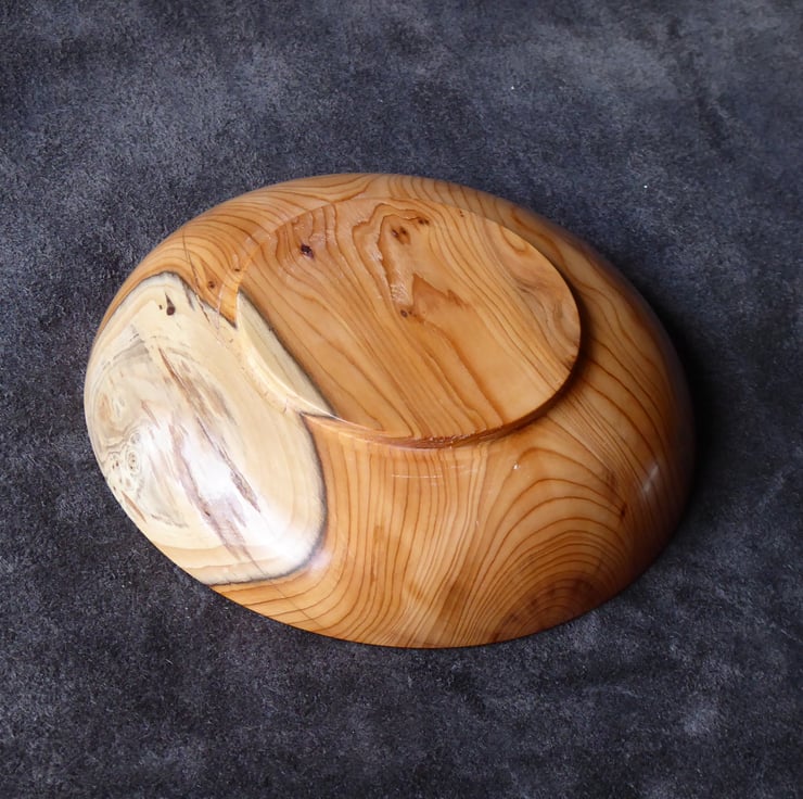 I Enjoy using up off-cuts and left over scaps of wood. Small bowls and platters are ideal for this. This piece of Yew has a few flaws but you should expect that of wood.