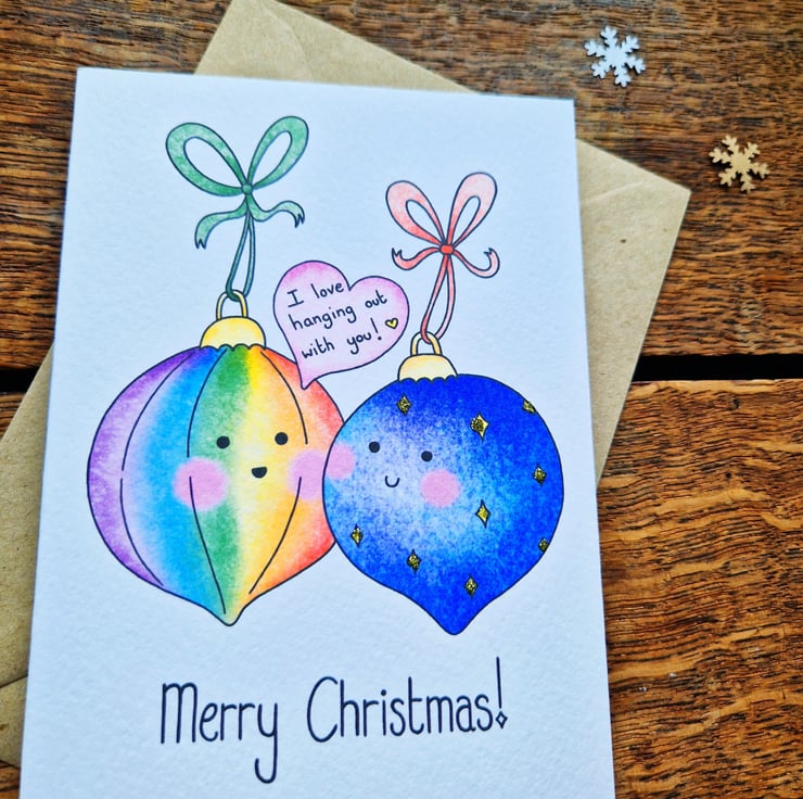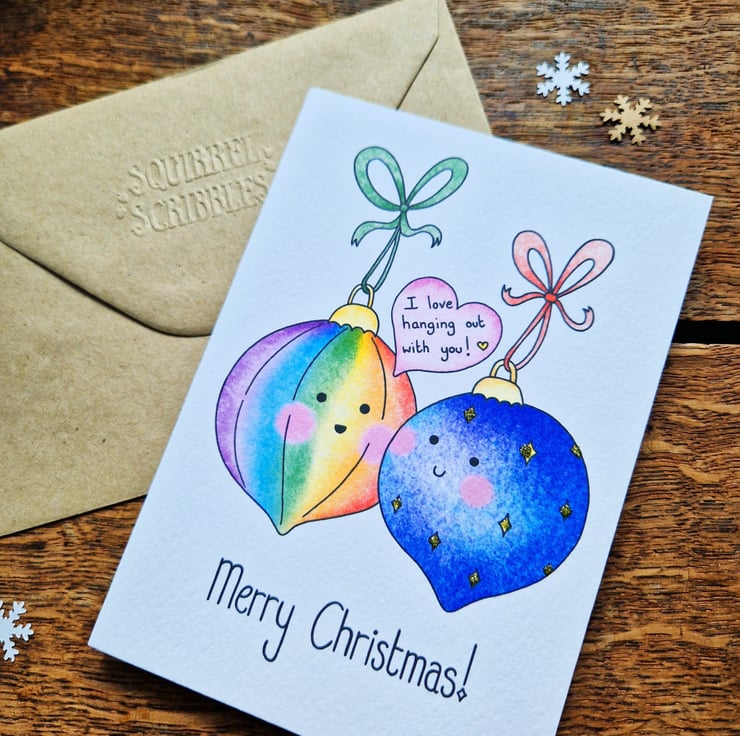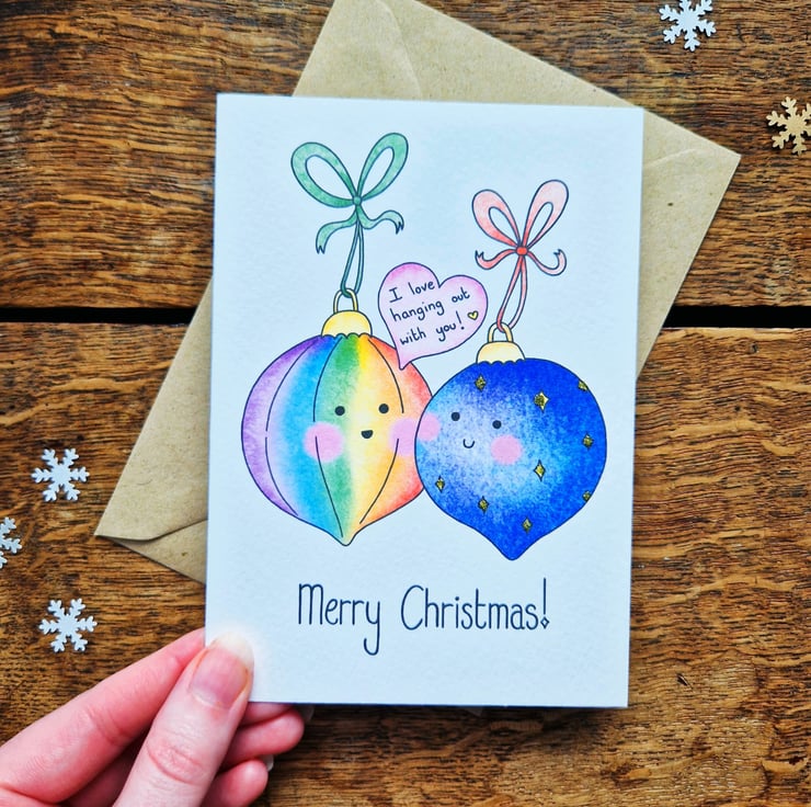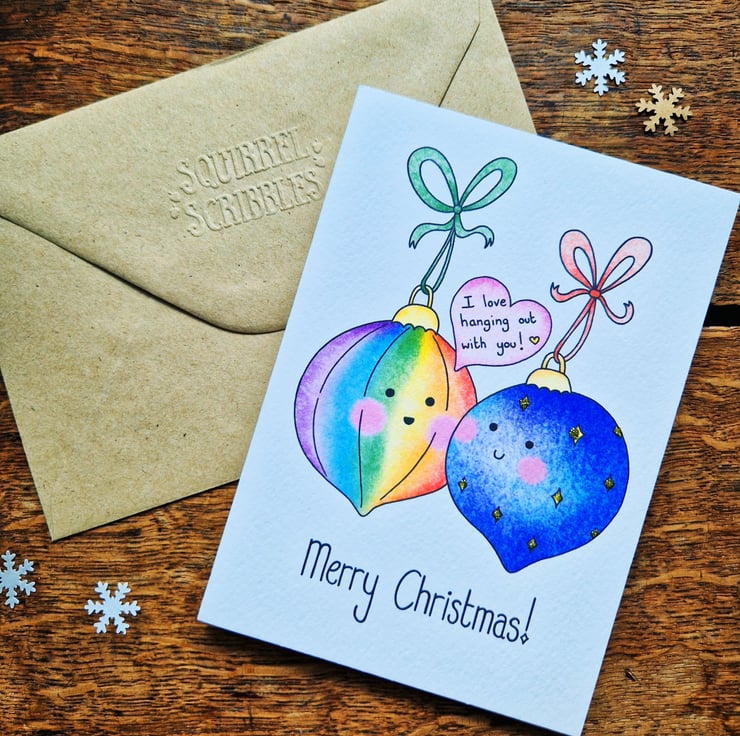 Christmas Bauble Card, Rainbow Christmas Card, Best Friend Christmas Card