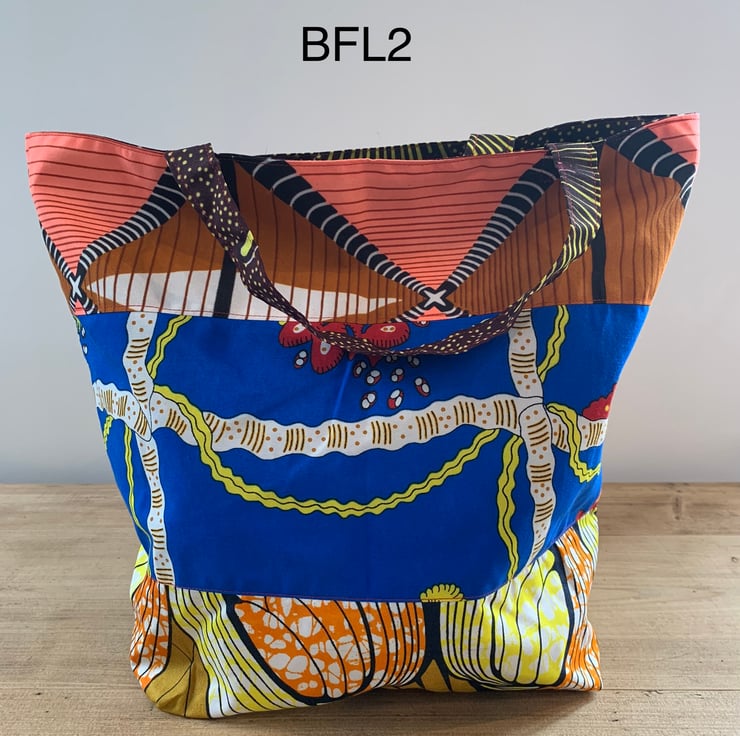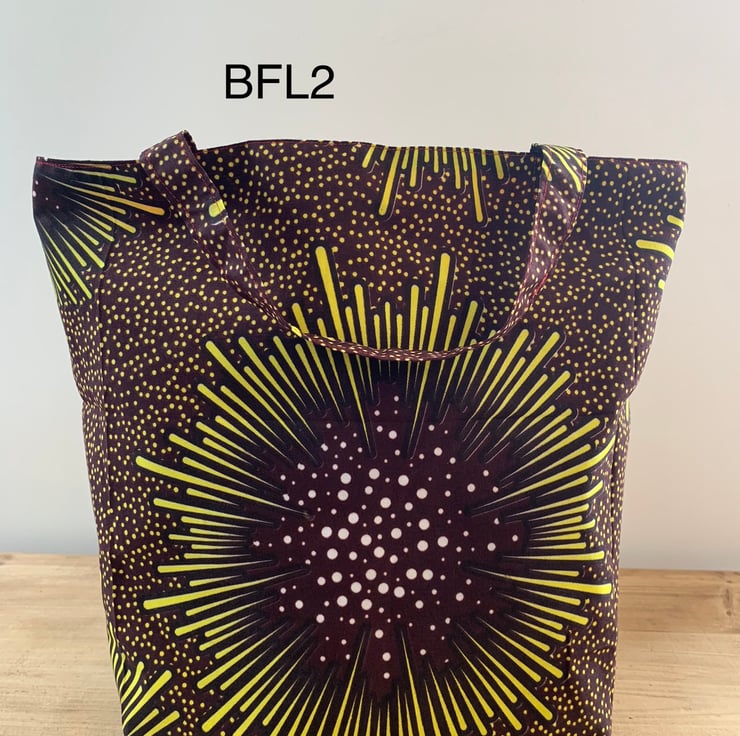 My large bags for life are perfect for shopping, travel, a day at the beach - all sorts of uses. Folds up small enough to fit in a jacket pocket or handbag. Made from vibrant African Chitenge fabric.
