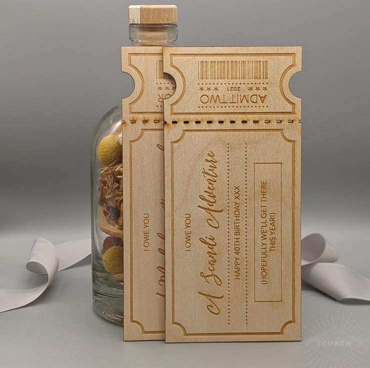 - This laser engraved ticket measures 200mm x 90mm x 3mm.