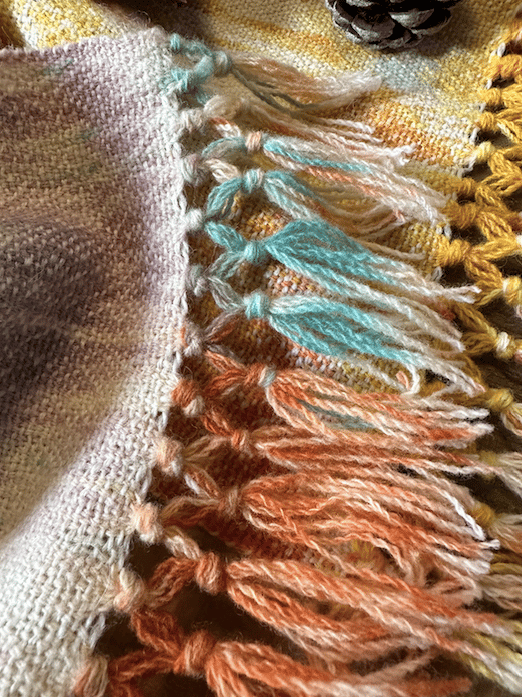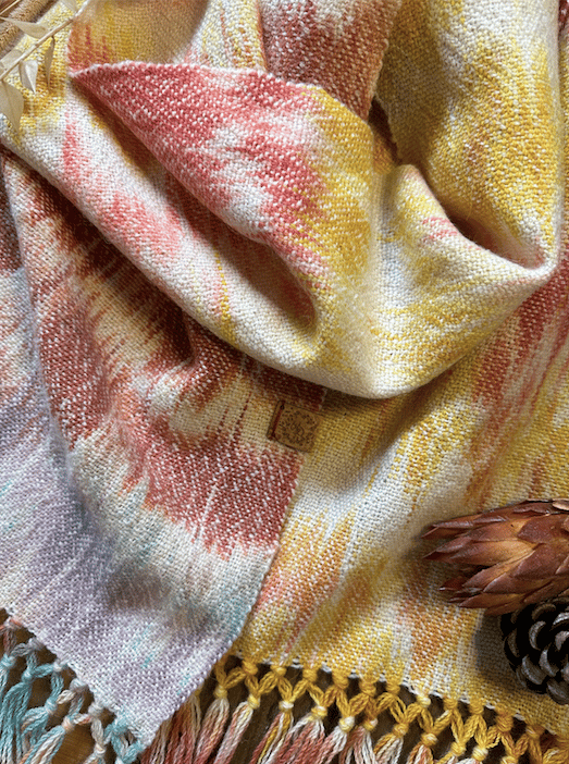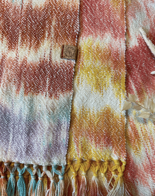 A beautiful one of a kind lambswool scarf featuring our signature hand painted warp, inspired by a photo I took at National Trust property Cothele while on holiday last autumn. Sure to brighten up even the greyest day!