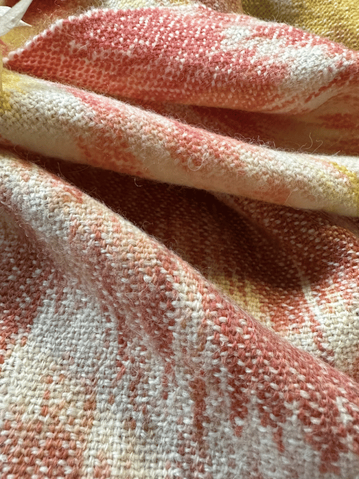 Featuring a hand painted British lambswool warp with an undyed British lambswool weft. Hand woven in a traditional plain weave on our medium loom - a 4 shaft Harris Counter March loom named Marilyn.