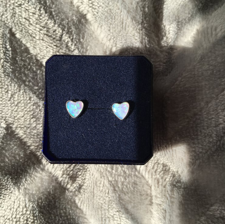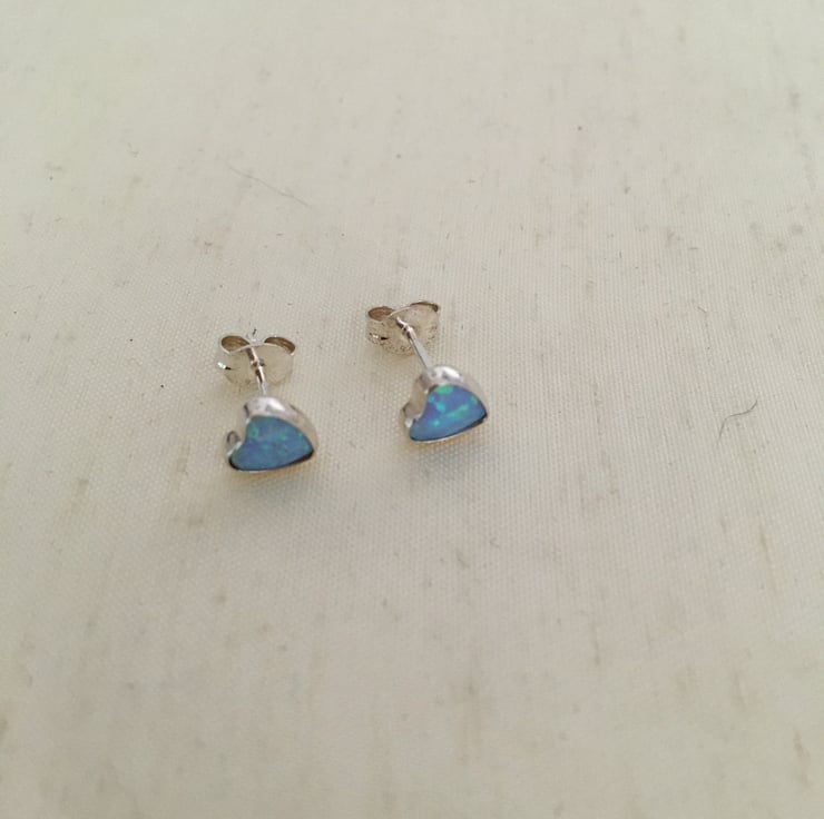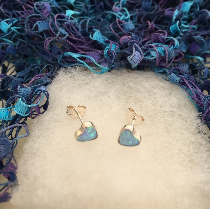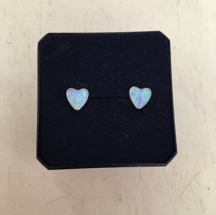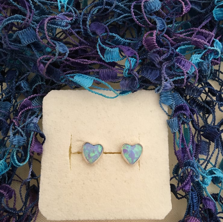 Delightful dainty heart studs with faux opal centrepieces set in St.Silver.