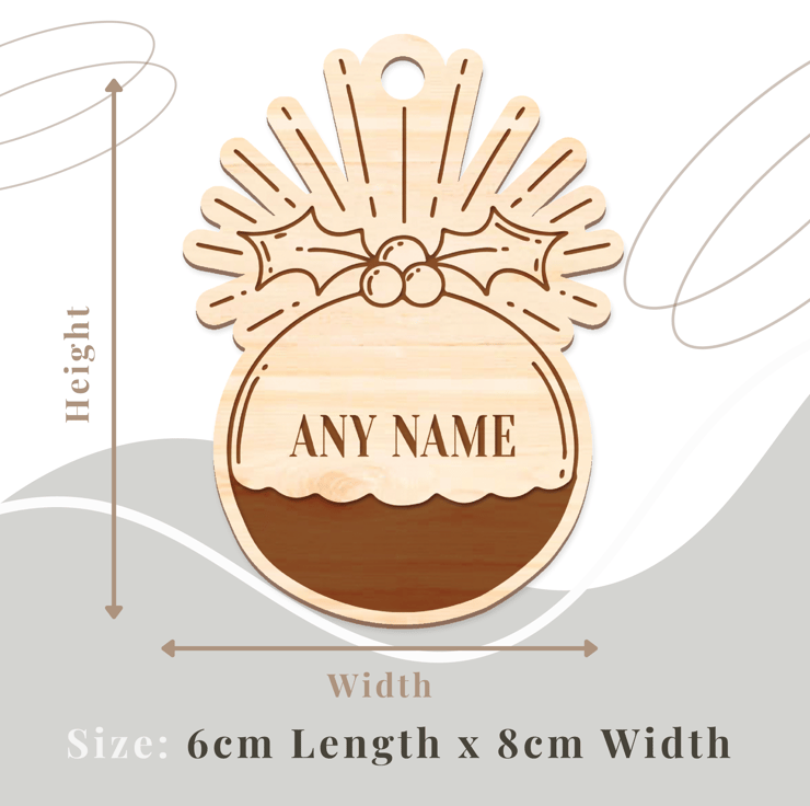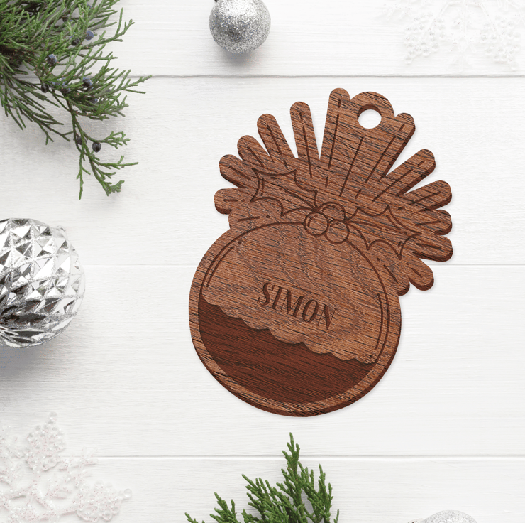 Jingle all the way to a holly jolly Christmas with our Christmas Pudding Name Bauble! This unique wooden ornament, adorned with an engraved festive pudding, can be personalised with any name. Hang it with care on your tree, your mantle, or anywhere that needs a little extra sparkle this holiday season and spread the cheer!
