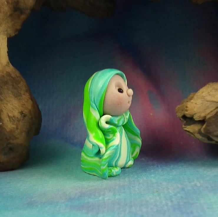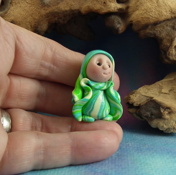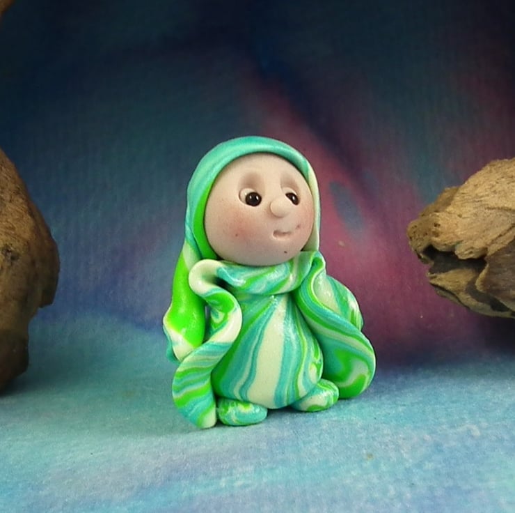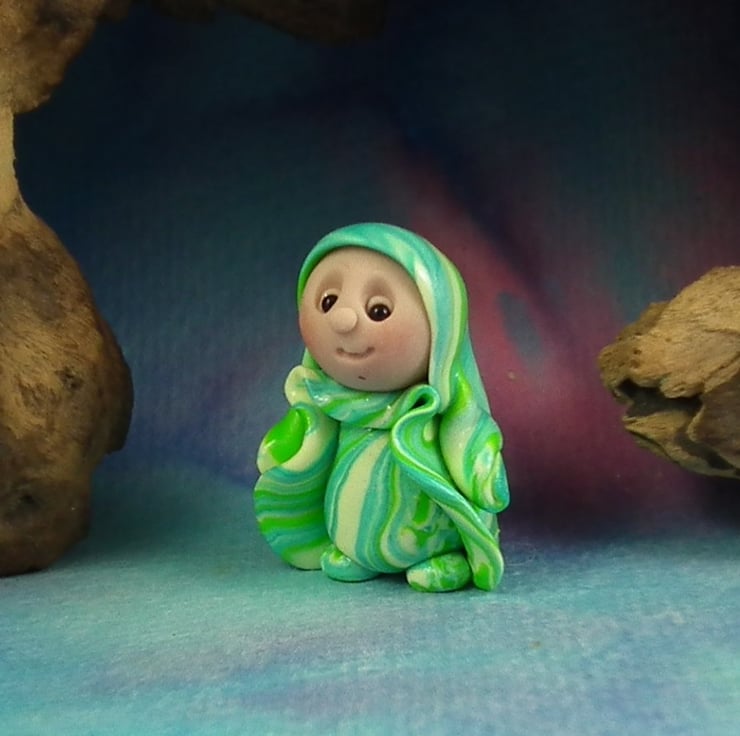 This is a 'one of a kind' creation having been entirely handmade without the use of moulds here at my studio on the Sussex Coast. Modelled with artist blend polymers, blushed before sealing with lacquer, Mina has sparkling black onyx eyes and variegated robes. Mina the Garden Gnome is just one and a half inches tall.