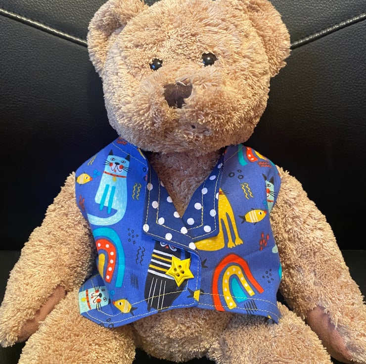 I thought this fabric was perfect for a teddy waistcoat. My teddy waistcoats make great stocking fillers for everyone. Who does not have an old teddy somewhere!