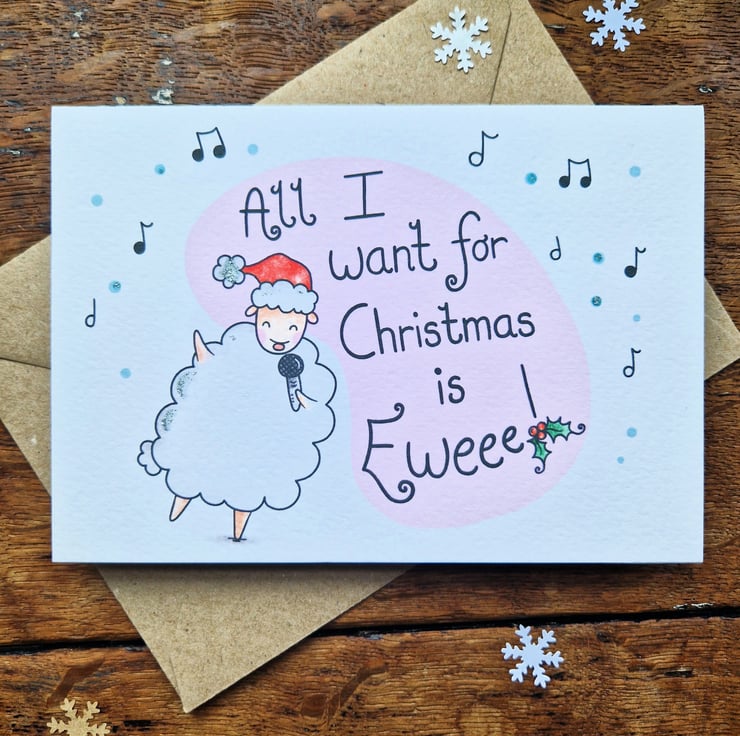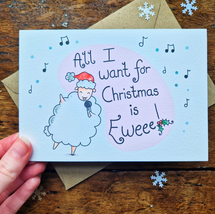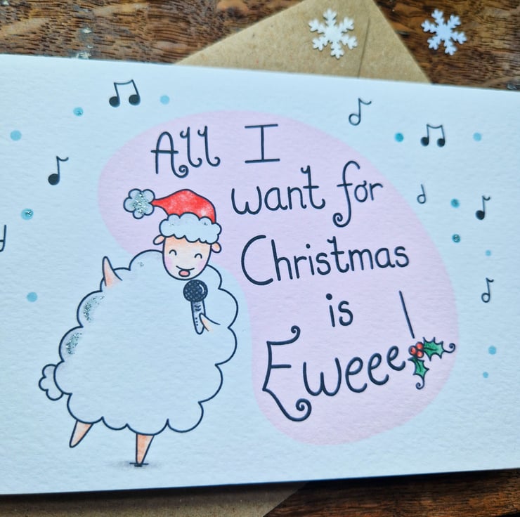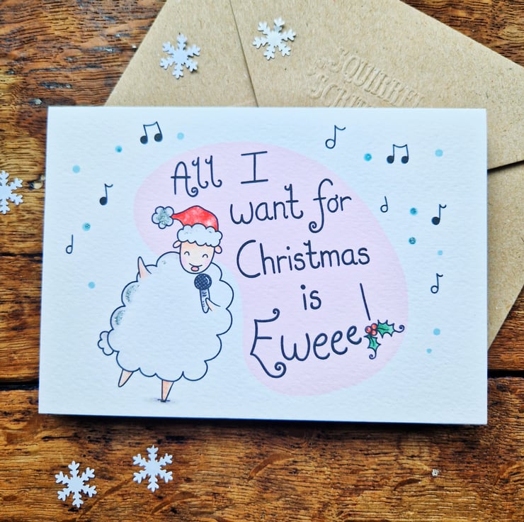 A Christmas card handmade especially for 'ewe'! This funny sheep Christmas card is perfect for friends and family alike, and is printed on FSC card and hand-finished to biodegradable glittery perfection! (P.S: If you would like to purchase multiple cards, there are Christmas card 'choose your own bundle deals' available in my shop for this month!)