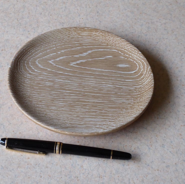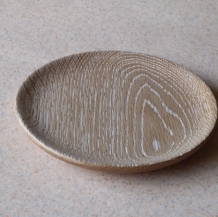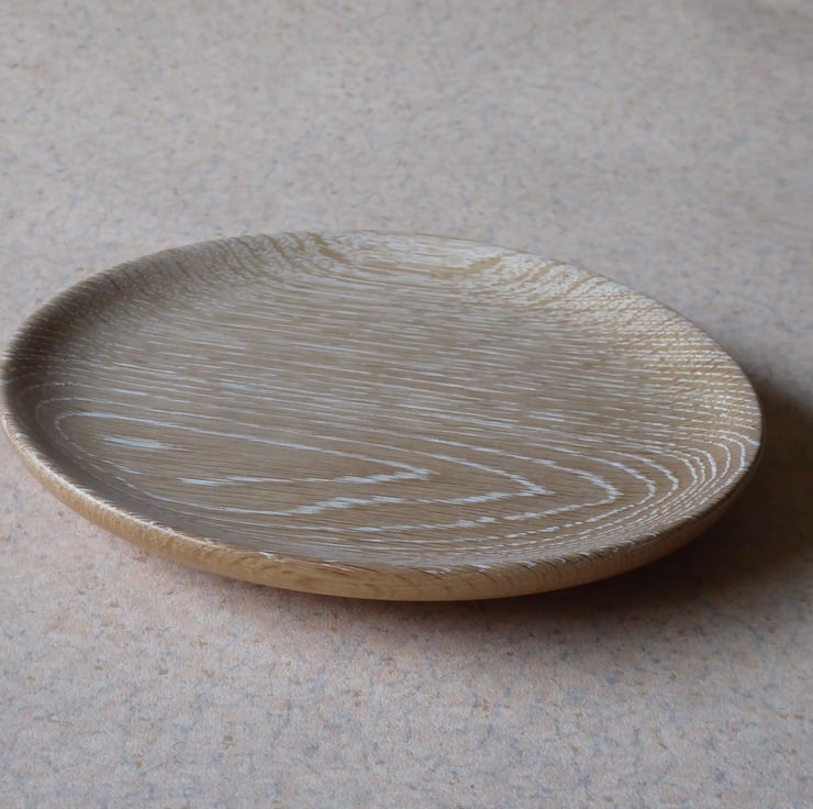 Simple but elegant English Oak Platter (Quercus Robur) decorated with Liming wax to accentuate the grain pattern.