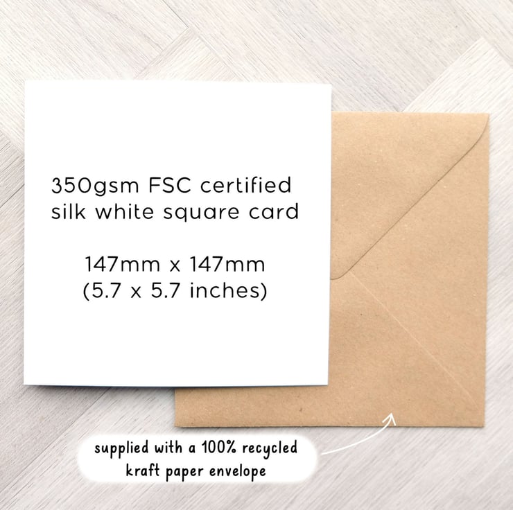 Square (147x147mm) FSC certified 350gsm silk white card