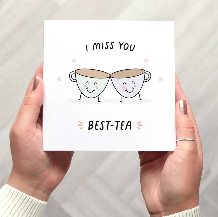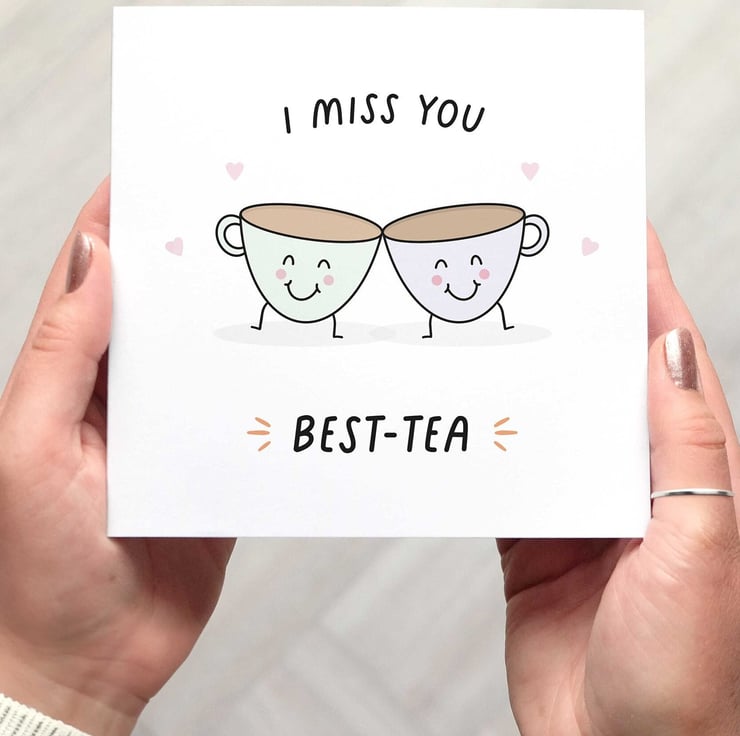 Let your best friend know you are thinking of them and miss them with this cute pun teacup card.