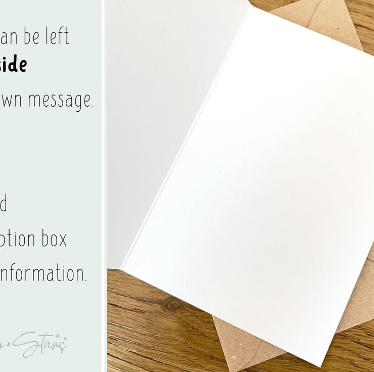 Blank inside for your own message (additional charge applies to include a printed message inside the card)