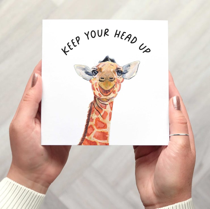 A supportive card featuring my watercolour and ink giraffe illustration. "Wee Stanley" the giraffe is here to cheer someone up and offer encouragementsupport.