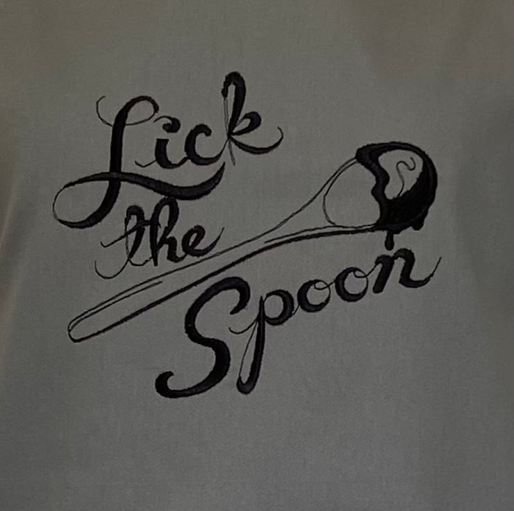 Chef Style Apron In Grey Embroidered with 'Lick the Spoon'