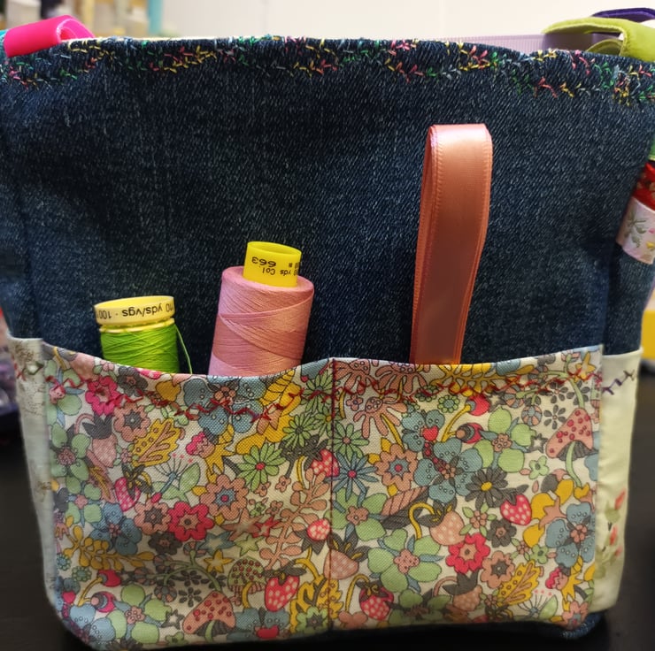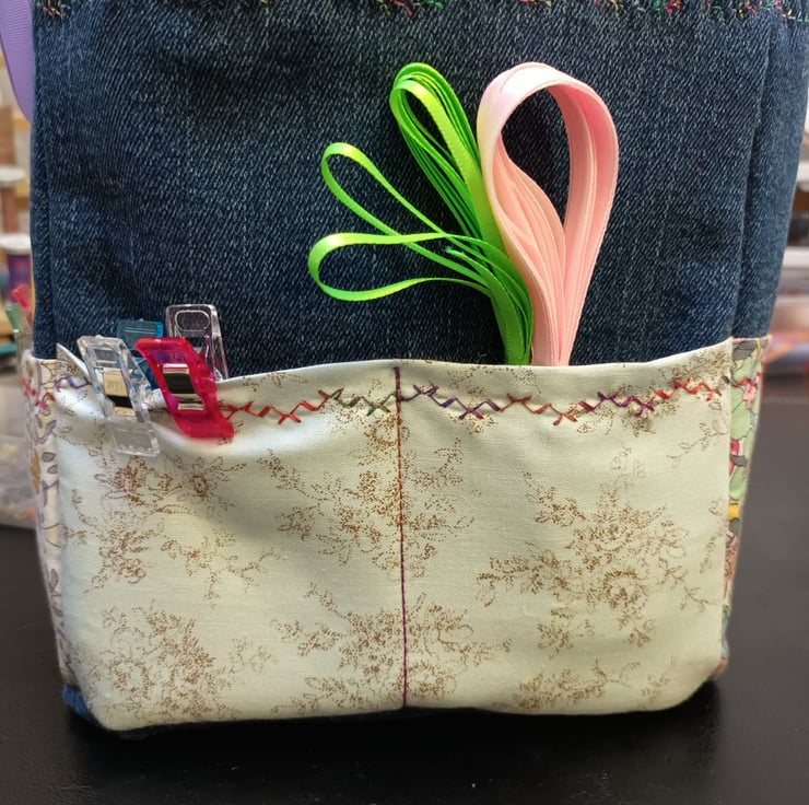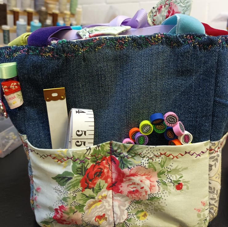 I use mine to keep my sewing supplies handy in the eight little pockets around the outside.