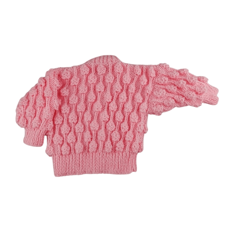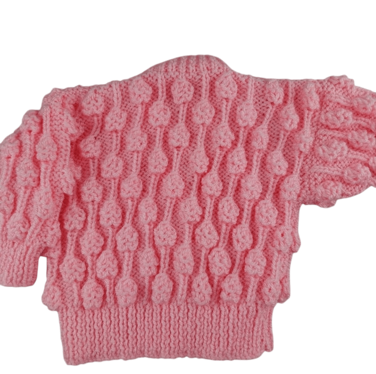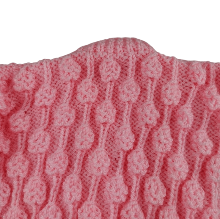 Knitted Baby Cardigan in Pink, Bobble Pattern, Baby Girl Gift, Size 0-6 months