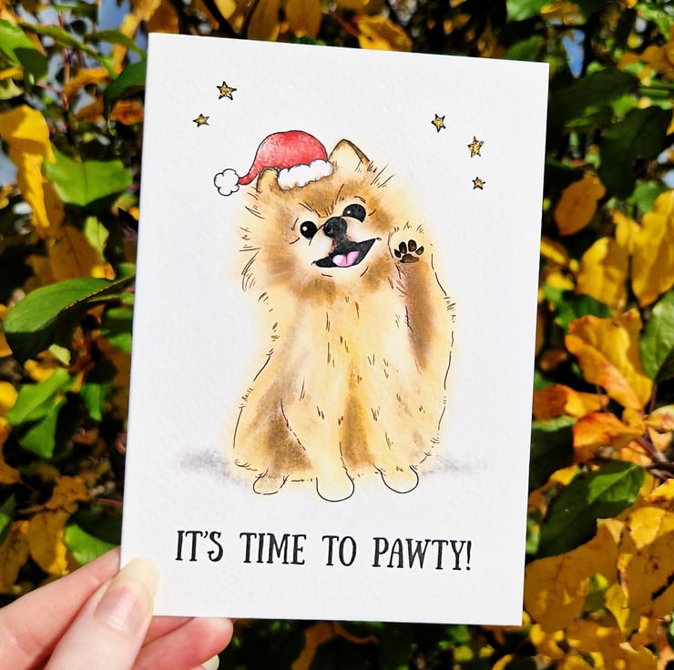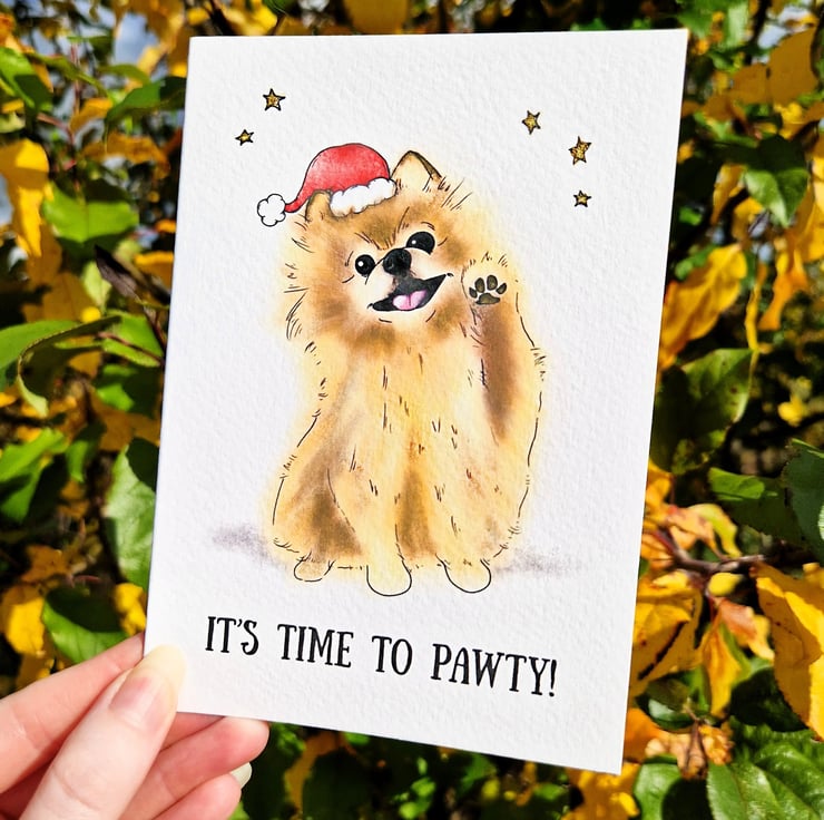 The cutest Christmas puppy! This adorable A6 Christmas dog card is handprinted on textured card and glittered by hand!