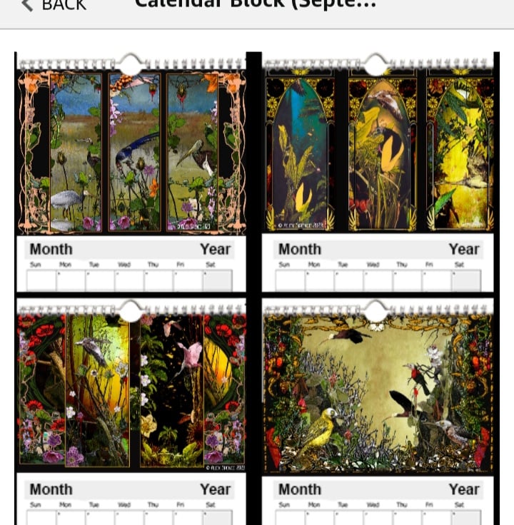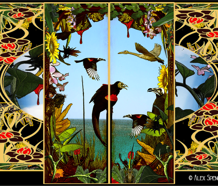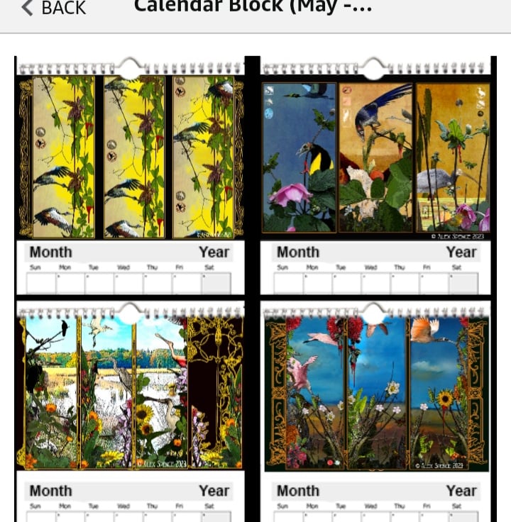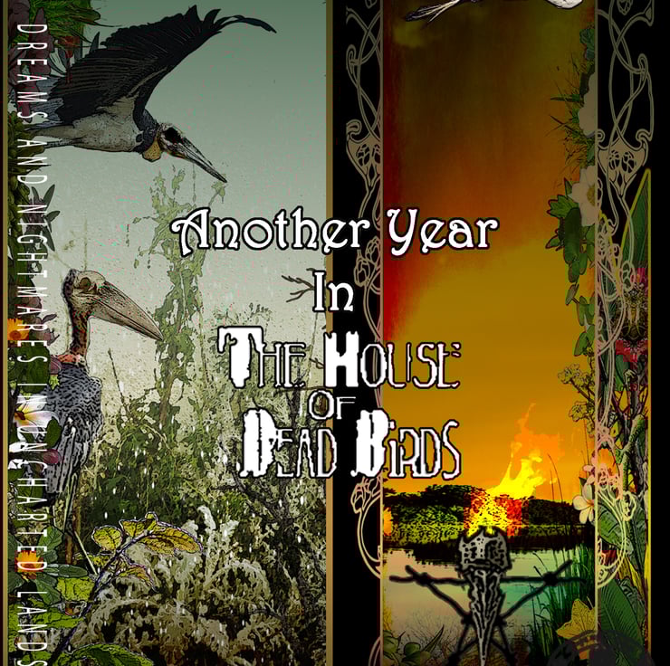 An A4 calendar from the Dead Bird Scrolls with echoes of Art Nouveau - A digital mix of the real and imagined exploring a fascination with birds, landscapes and plants and how they change with the seasons, with the light, with climate change and the very real prospect of human extinction.