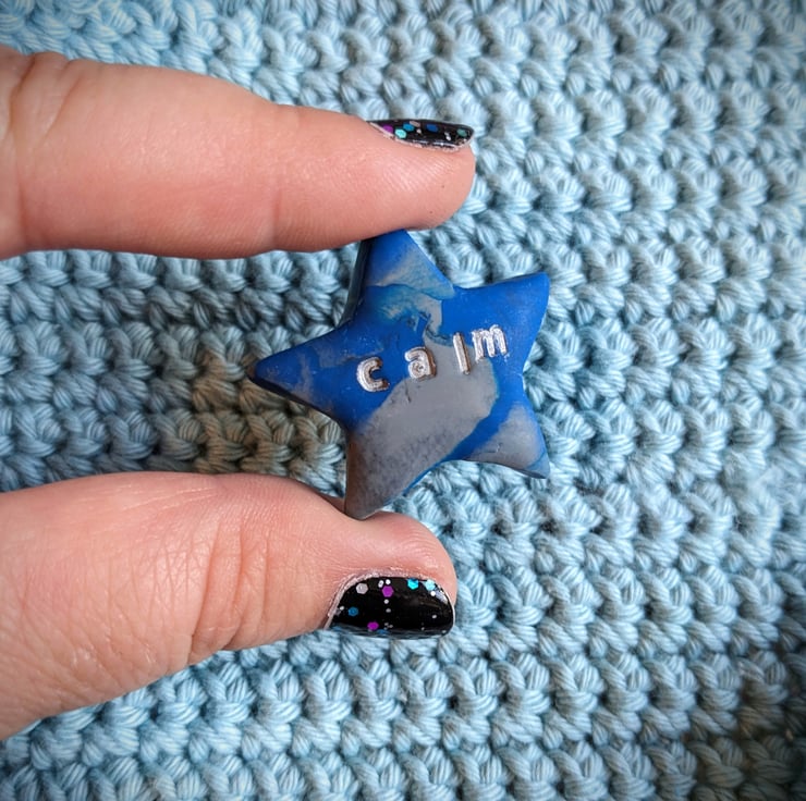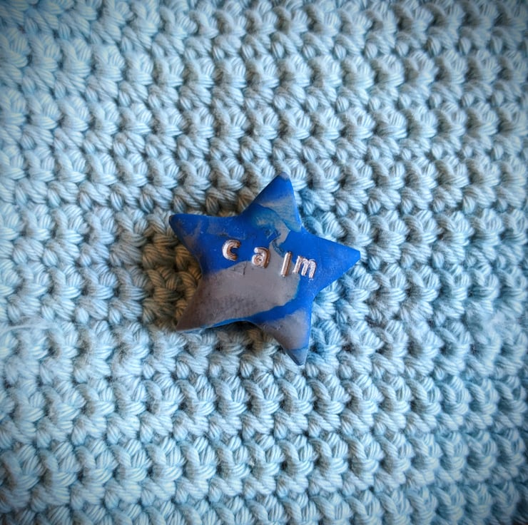This beautiful star is stamped with the word 'calm' as a little pocket-sized reminder to keep your cool and just breathe.