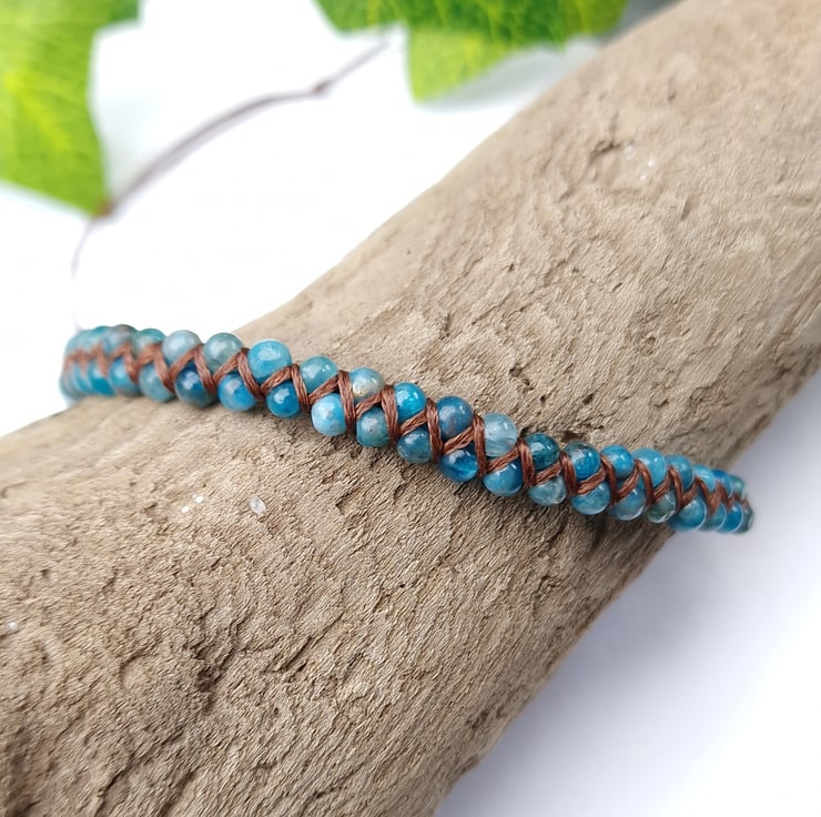 Dainty Apatite Macrame Gemstone bracelet, handmade with 3 - 4mm grade A gemstone beads and waxed cord.