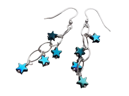 Each stone hangs separately from the chain, they spiral around the centre line in such a way that the waterfall earrings are a mirror image of each other.
