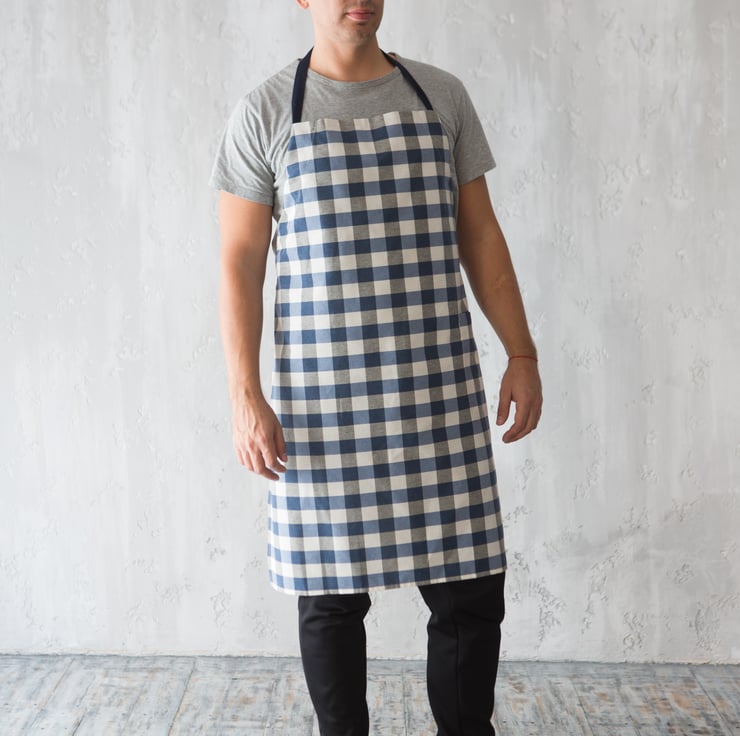 Especially for the lovely men in our lives who enjoy cooking, we have developed a versatile range of men's aprons with eye catching gingham print. Of course, these chef aprons can be also worn by ladies as they are fully adjustable!