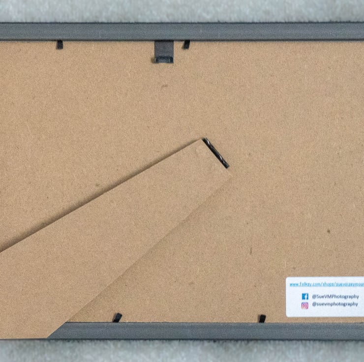 The photo is printed on 260g environmentally friendly glossy photo paper and is in a black frame with a Perspex front and a white card mount which is hand-signed by myself. The frame can be either hung on a wall or stood on a flat surface.