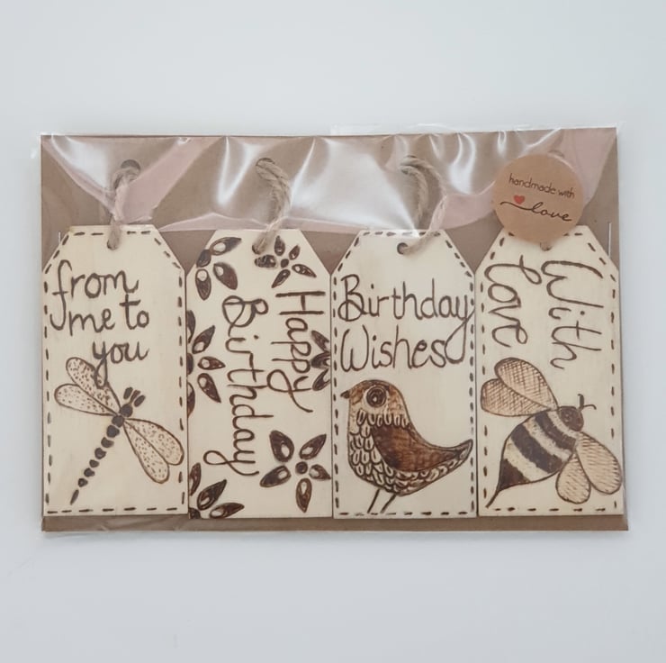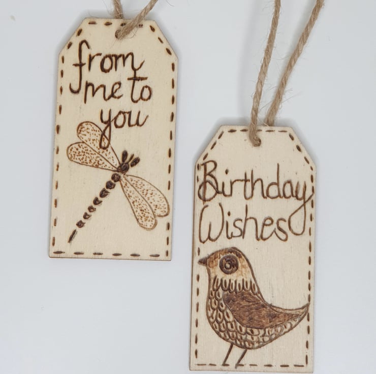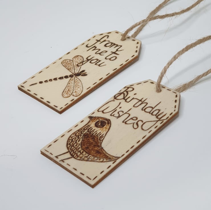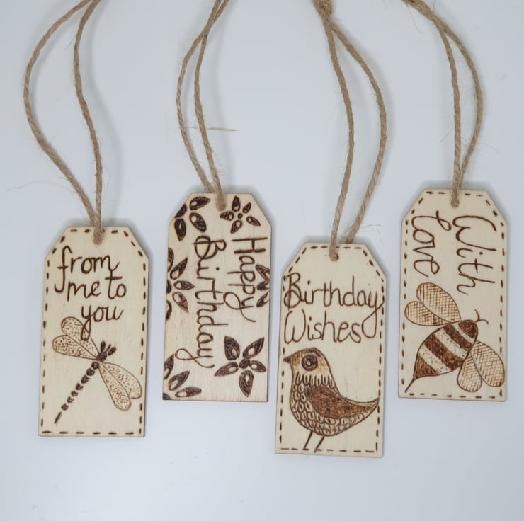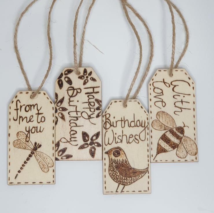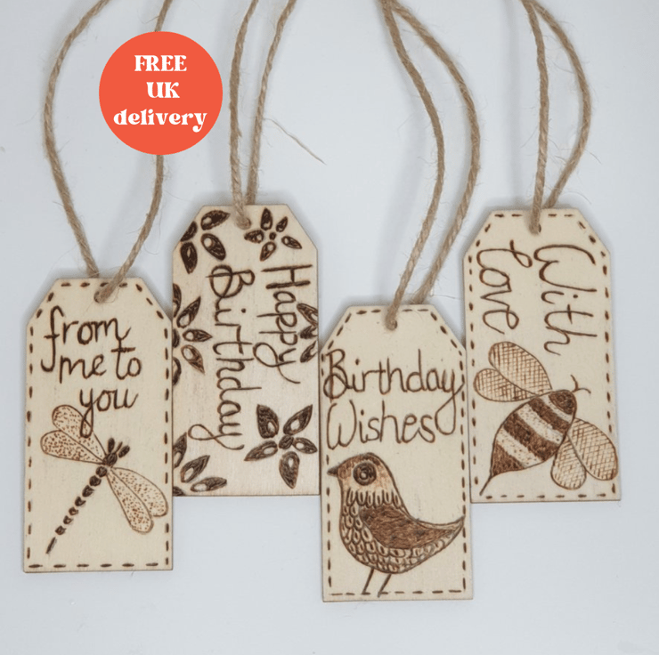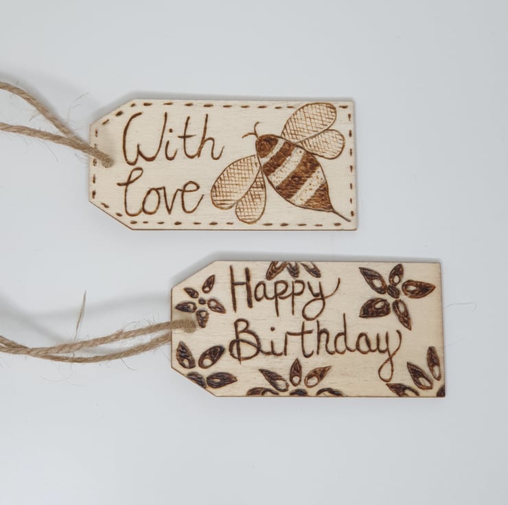 I love the natural beauty of wood and the effects you can achieve using pyrography. These tags will add that little extra to your special present.