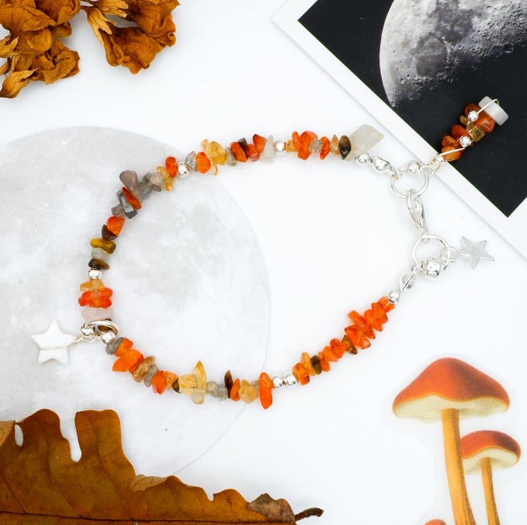 Handmade with tons of love by Moondrop Studio in the heart of the East Midlands, this beauty combines the earthy charm of semi-precious Carnelian and Garnet gemstones, with the sparkle of sterling silver!