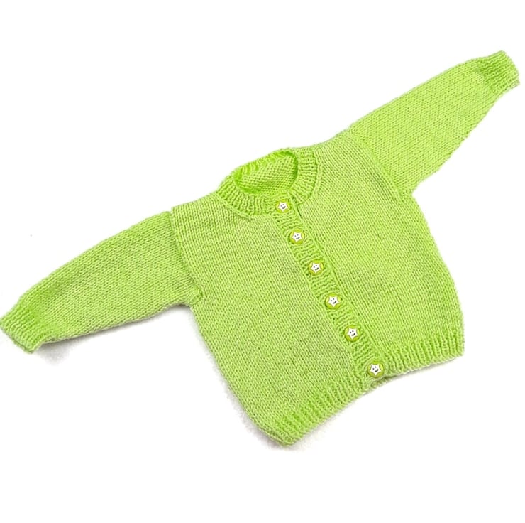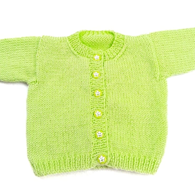 Introducing our vibrant Hand-Knitted Lime Green Baby Cardigan—a fun and fresh addition to your little one's wardrobe. Made from zesty lime green yarn, this round-neck cardigan adds a pop of colour and energy to any outfit.