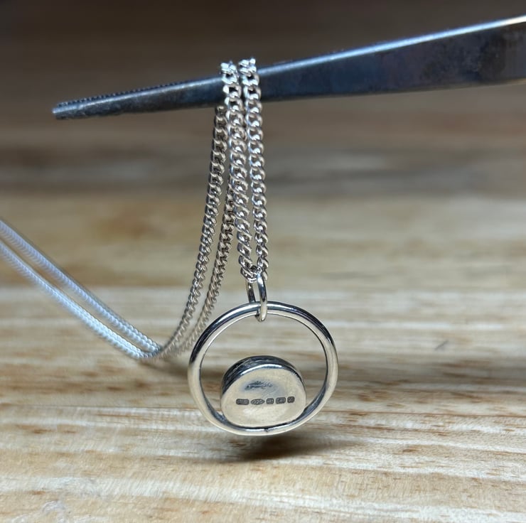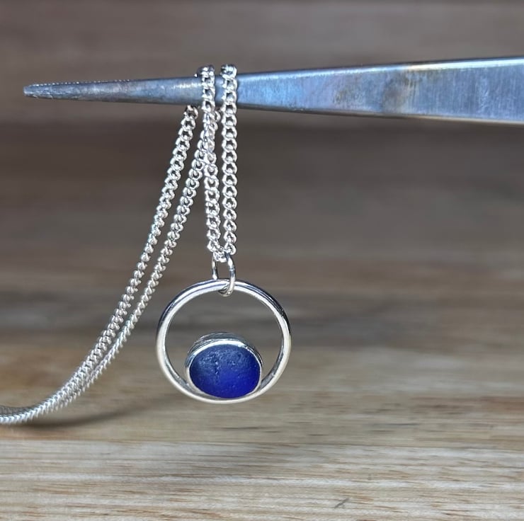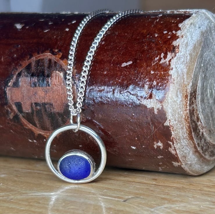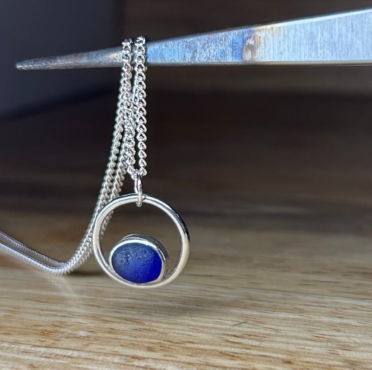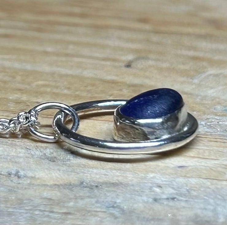 Beautiful handmade sterling silver ring pendant with a gorgeous piece of indigo blue welsh sea glass collected from North Wales. The sea glass shines different shades of blue in different lights, stunning! Gas been hallmarked at the assay office for authenticity. Comes on an 18’’ length sterling silver chain, shorter or longer chains available upon ordering (please a message in notes).