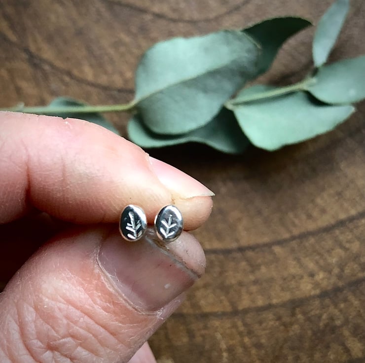 Pretty little leaf studs handmade from recycled sterling silver. These earrings would make a lovely gift.