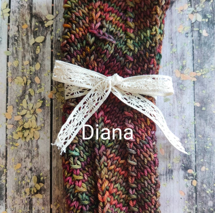 Beautifully soft fingerless gloves,designed and hand knitted by me using gorgeous merino wool. The main photo shows them in 'Diana' colourway.