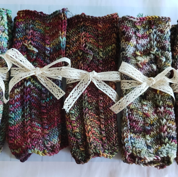 Please be aware that all the yarn is hand dyed and these photos are only a representation of the colours. Each pair of gloves will be slightly different in colourways.