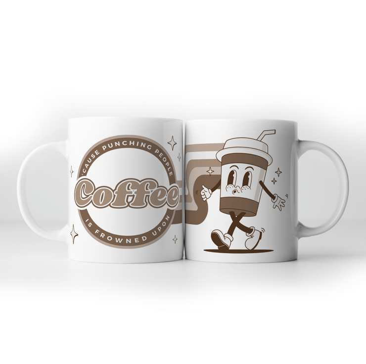 Punch Monday morning in the face with our hilarious retro coffee themed mug. This Mug is perfect for the caffeine-obsessed or anyone who could use a good laugh in the morning. With a design printed on both sides, you’re guaranteed a good chuckle. Order now and let the good times brew.