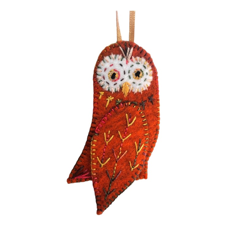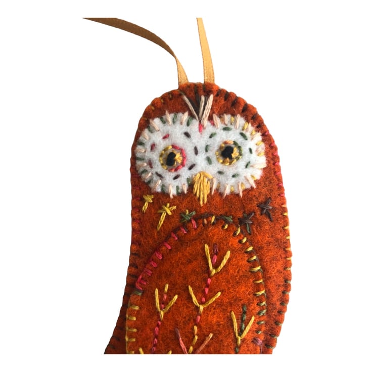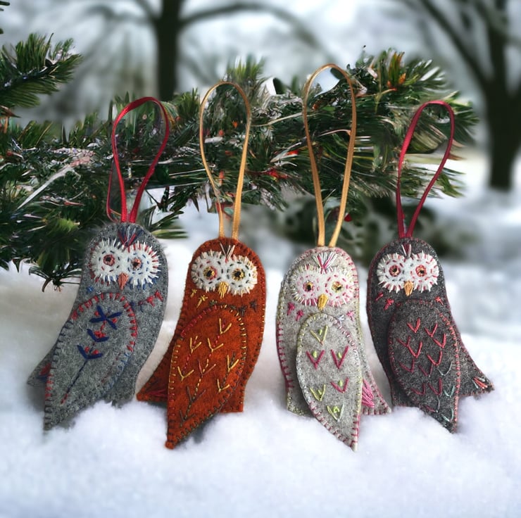 Made by me for your Christmas Tree ,this little owl is crafted from 100% wool felt and hand embroidered.