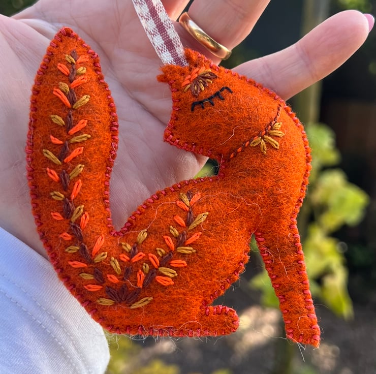 All of my makes are eco friendly and made to last from 100% wool felt and stuffed with washed wool fleece sourced from Yorkshire. I use DMC cotton thread to embroider folk patterns and stitches creating totally unique heirloom treasures.