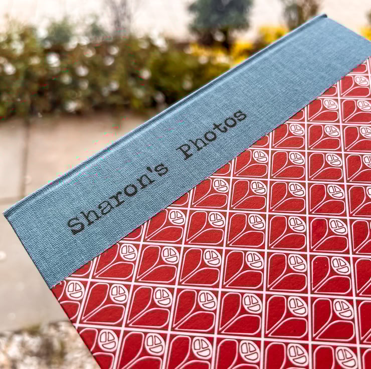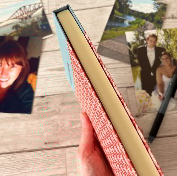 Photo journals have always appealed to me with their hybrid nature of photo album & journal. Being able to write names, places, & memories on the page adds to the memories. I always like to find a way to personalise the books I make. This one is printed on the spine overlap, giving the book a different, more contemporary look.
