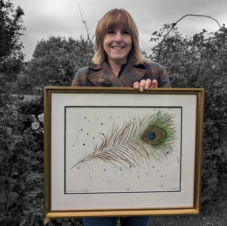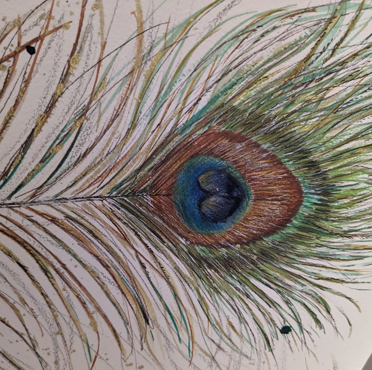 Peacock Feather, An A4 or A3 mounted signed print of an original painting