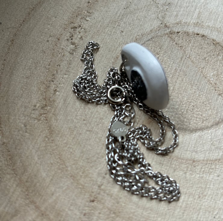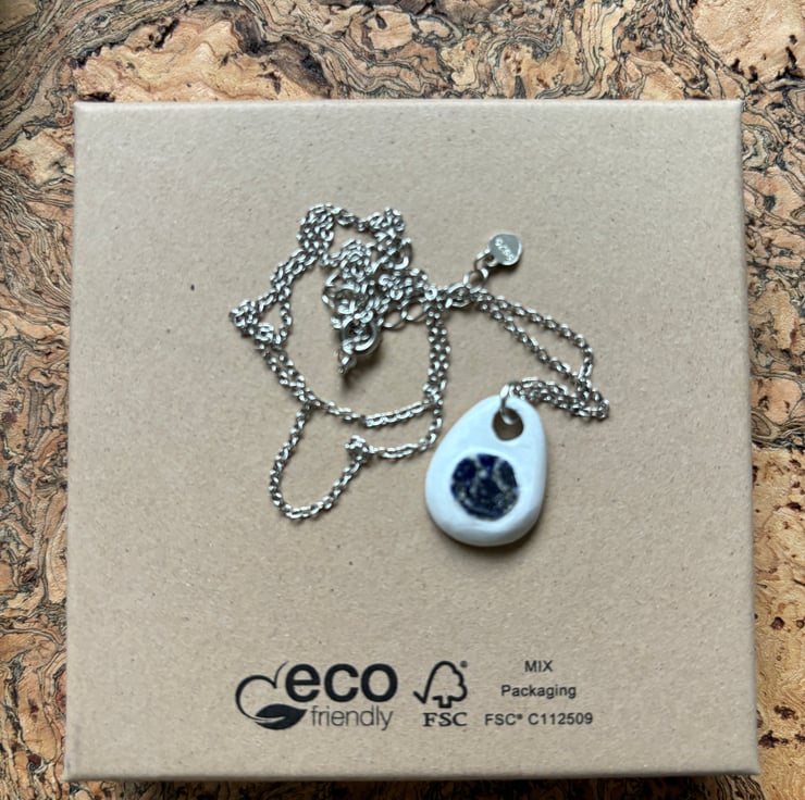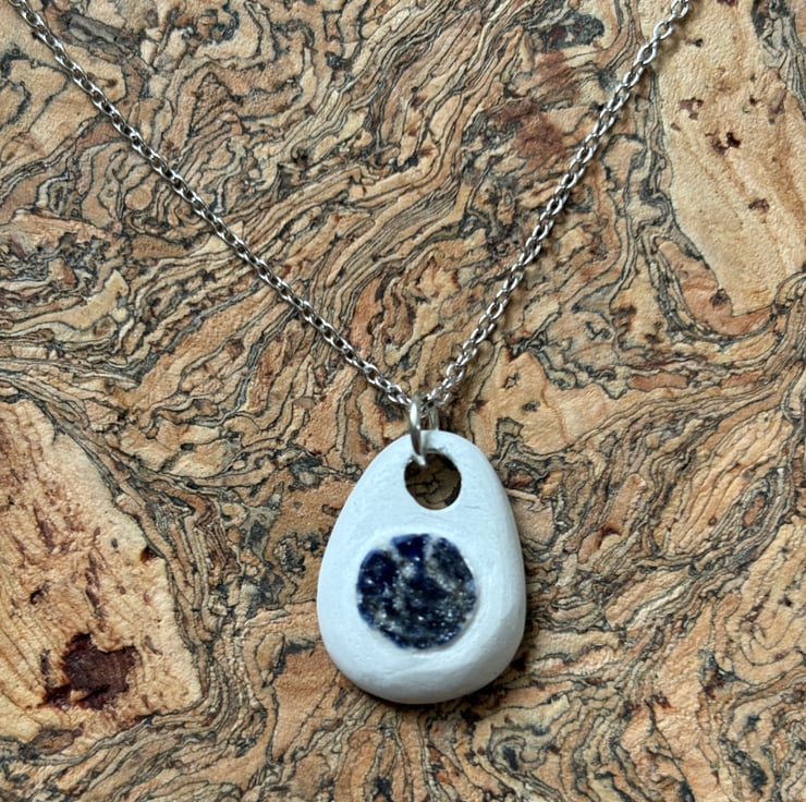 The result is this pendant, full of history, once a broken piece of ceramic lost, found by chance, broken again and reshaped into something unique. Front glaze in tact but has scratches, back sanded around glaze and protected with Eco Friendly sealant.