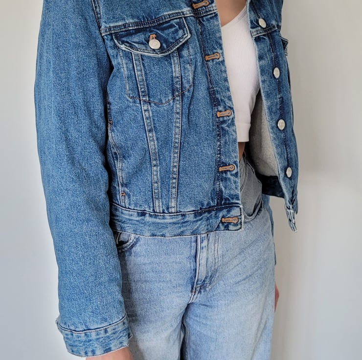Jacket from Zara size M but would fit smaller size if you like an oversized fit.