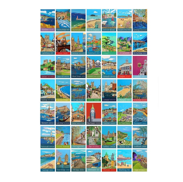 A collection of 49 images of my most popular travel poster prints, from Aberdeen to Cornwall, all from my own original acrylic paintings.