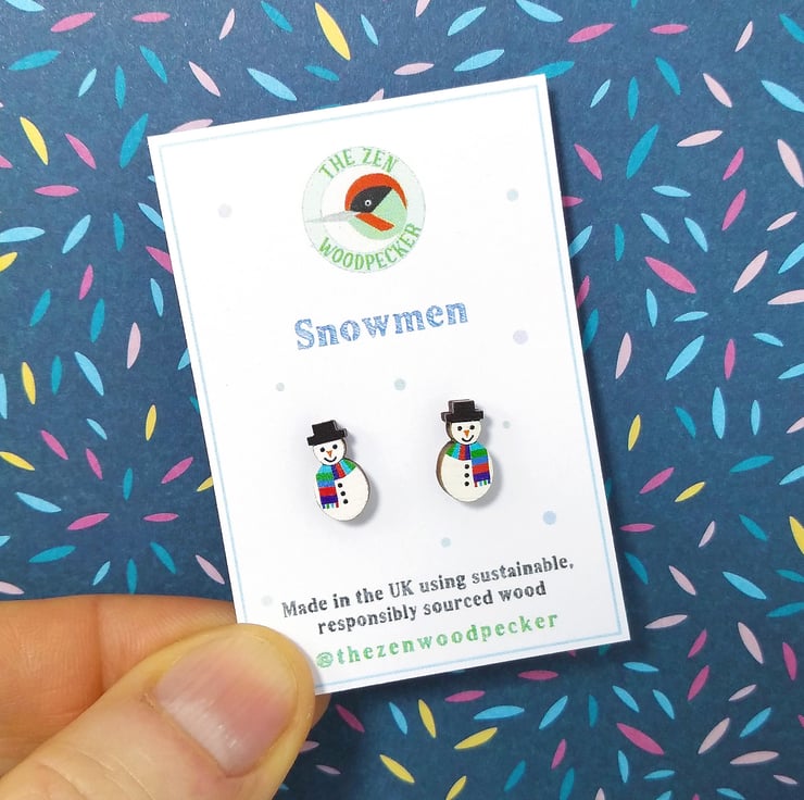 These cute little snowmen are designed by Carolyn and made in the UK using birch plywood from sustainable, responsibly managed woodlands.