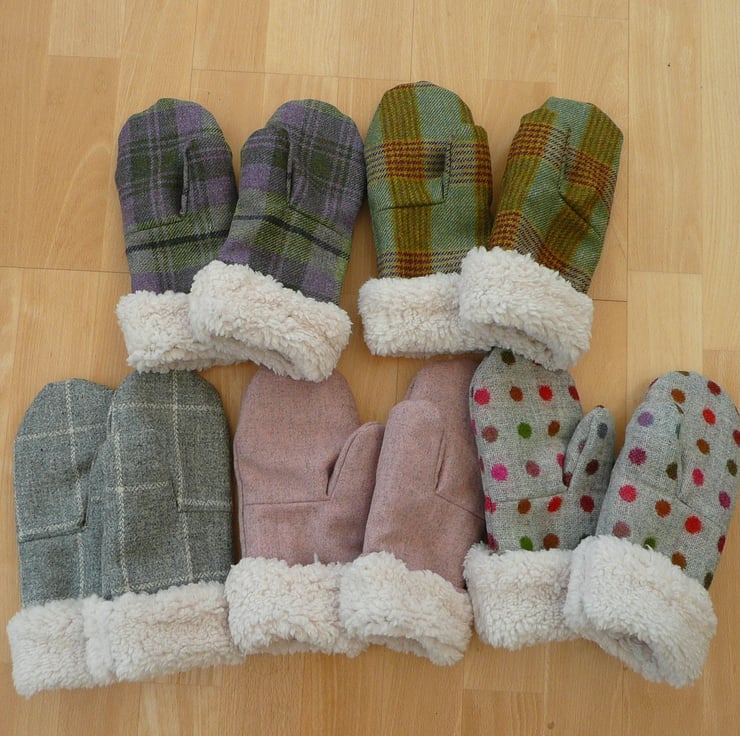 I always suffer with cold hands in the winter, so I decided to start making mittens, I already had the beautiful wool tweeds in my stash, so I just needed the fleece and hey presto, we have beautiful luxuriuos sherpa fleece and wool tweed mittens to keep you warm all winter