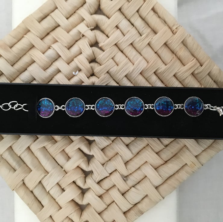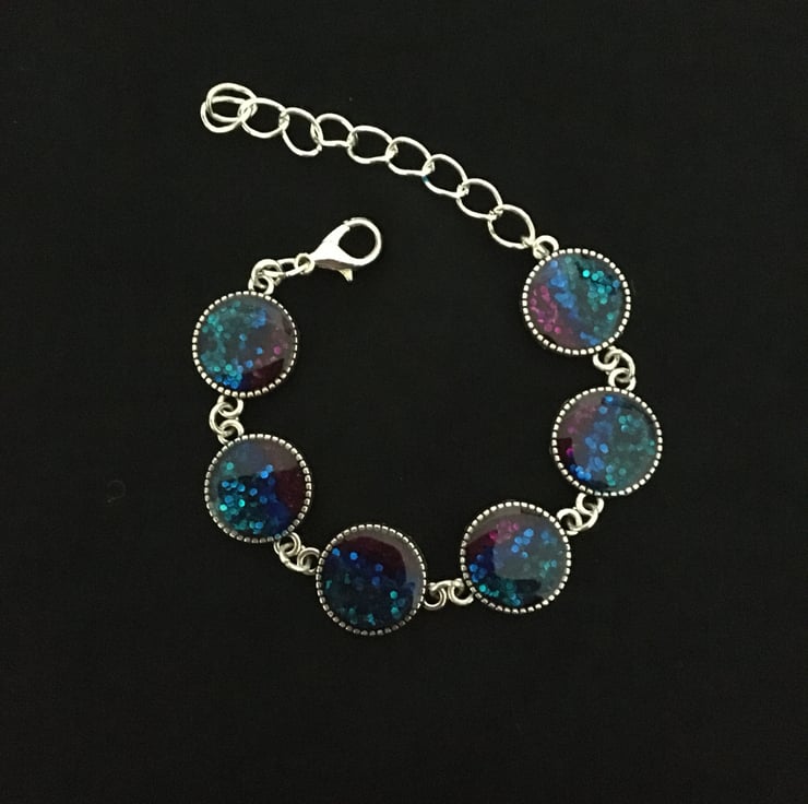 The bracelet measures 6ins with a 2.5in extender chain and fastens with a lobster clasp.
